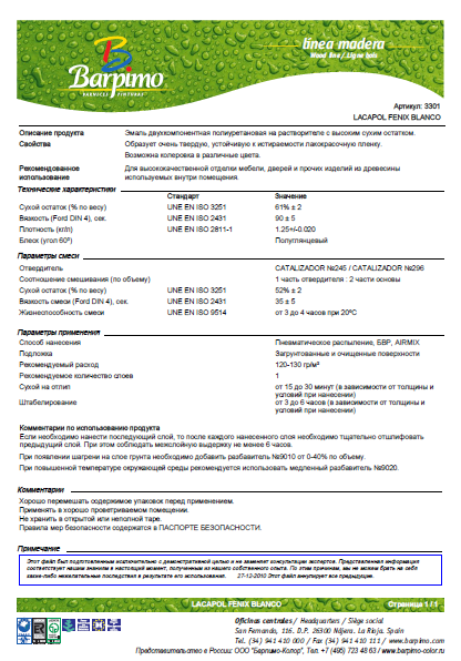 Документы и сертификаты* на древесину и лако-красочную продукцию.